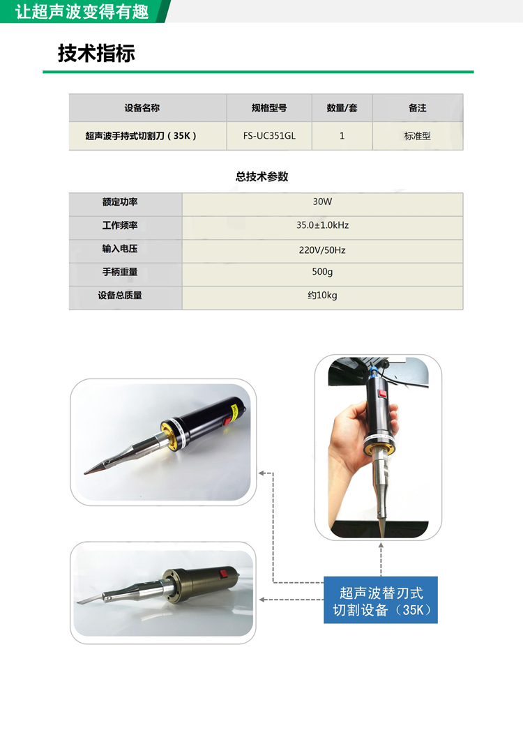 声峰塑料超声波切割机,主要用于塑料,塑胶,无纺布,布料等切割,不需要锋利的刀刃,不需要很大的压力,不会对切割材料的崩边、破损。切割刀在做超声波振动,摩擦阻力特别小,被切割材料不易粘在刀片上。对冰冻、粘性、弹性材料切割效果明显。如食品,橡胶或不便加压力的物体切割,特别有效。切割的同时,切割部位有熔合作用。对切割部位进行封边,可防止被切割材料组织的松散(如纺织材料飞边)。超声波切割机的用途还可以扩展,如挖孔,铲挖,刮漆,雕刻,分条等。